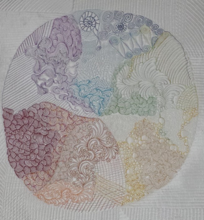 Kind of like breathing while quilting, it’s essential. It’s like taking a moment to look at what I have before beginning cutting fabric, or taking those first stitches of machine quilting. Do I have enough thread? Do I have the batting I want/need? And like any beginner I have an ideal of what I want this all to look like, however it’s going to take some doing to meet my goals. And right now, the doing is practicing.