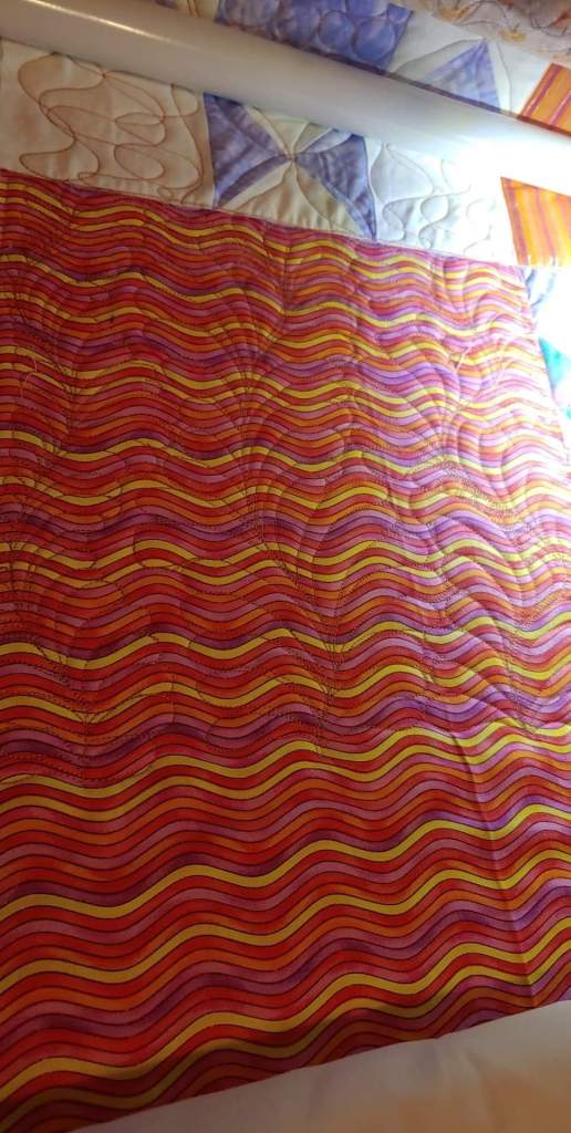 So this image above is some of the quilting that I shared with some friends. This is not my best work. It’s not intended to be my best work as I’m learning. I’m learning. I said something to my friends that I wouldn’t allow my students to say. You see, I’m working six inches away from the quilt. I haven’t had the time to put a lot of hours into the quilting. I know there will be milestones. Right now there’s the whole “she’s not working up to capacity” running through my head.