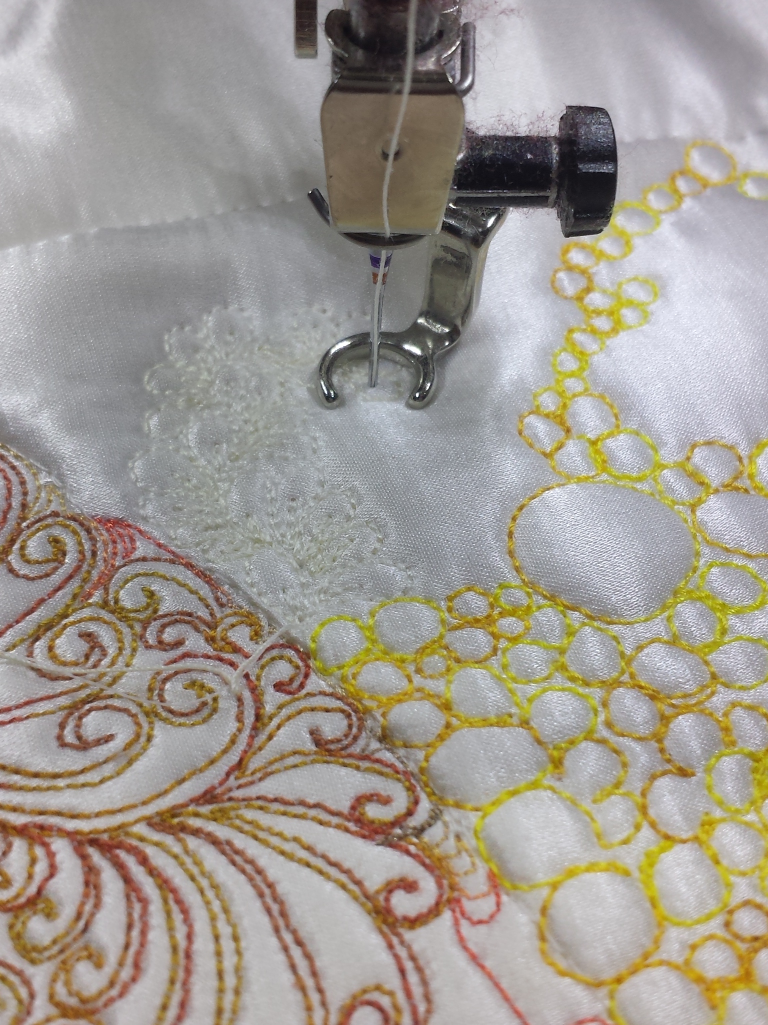 Often when I’m teaching I point out mistakes, missteps, wobbles, imperfections in the quilting, places where I wasn’t paying attention, yada yada. I do this for specific reasons