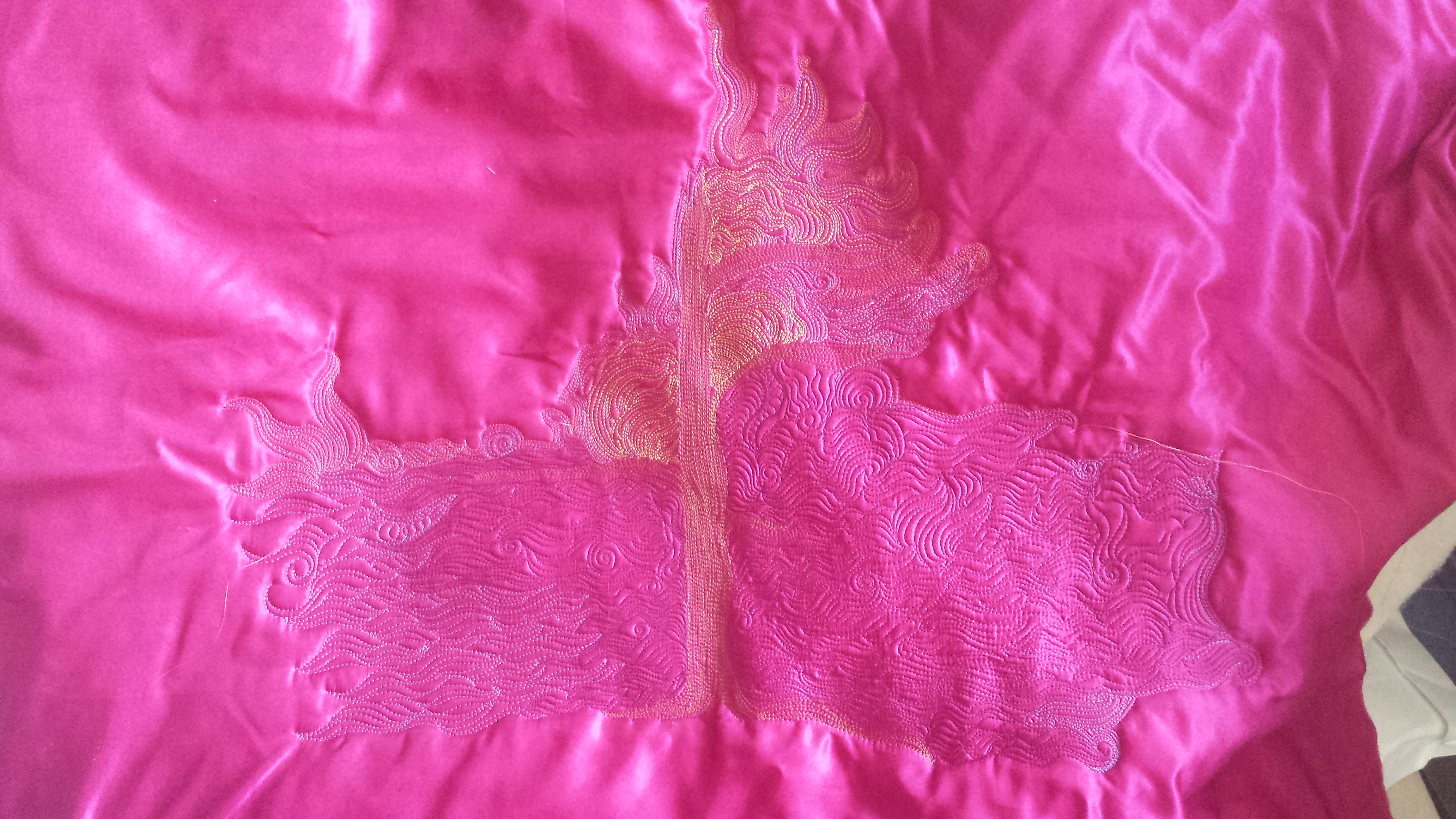 You might be surprised to learn that piecing a quilt top is not one of my favorite things to do. I can and do it well, it’s not the part of the quilting process that make my heart swoon with excitement. Swooning happens in the free-motion quilting, which may explain at least in part, my love for whole cloth quilting. For in free-motion machine quilting is where getting lost in the process is often the order of the day. Here is where sometimes the shoulders hurt because bad posture or frustration, and brain hurt from the exertion of doing the work. And herein is where it gets painful physically when I can’t quilt.