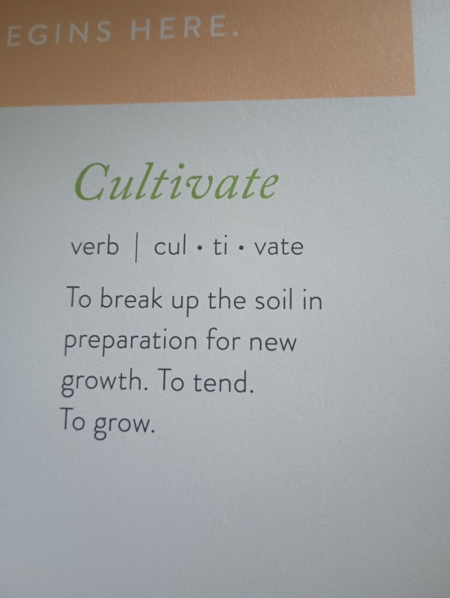 Since beginning this post the new planner arrived, to my surprise and delight “cultivate” is defined on one of the pages. I realized in that moment that I’m not quite done with this 2022 #woty. Or more clearly this word is not quite done with me. Cultivate is, as my friend described an overarching word that woos one to preparation, growth, tending, sowing, nurturing.