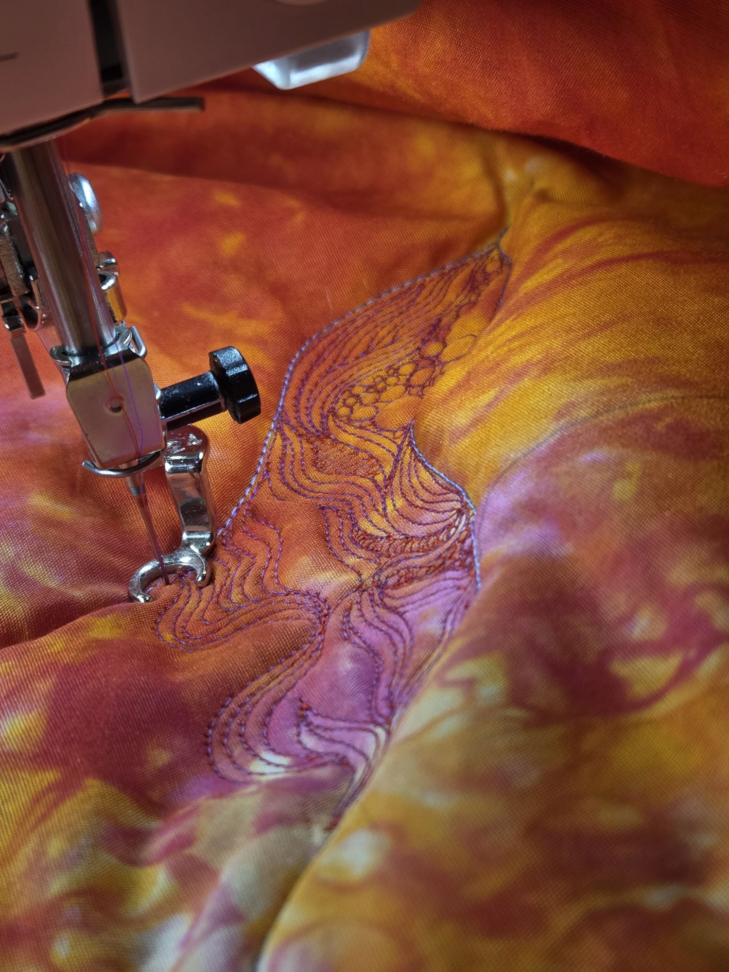 This is much more of a shocker than it might seem at first. It’s been a while since I’ve just quilted for myself, for the sheer joy of watching what happens when. . .